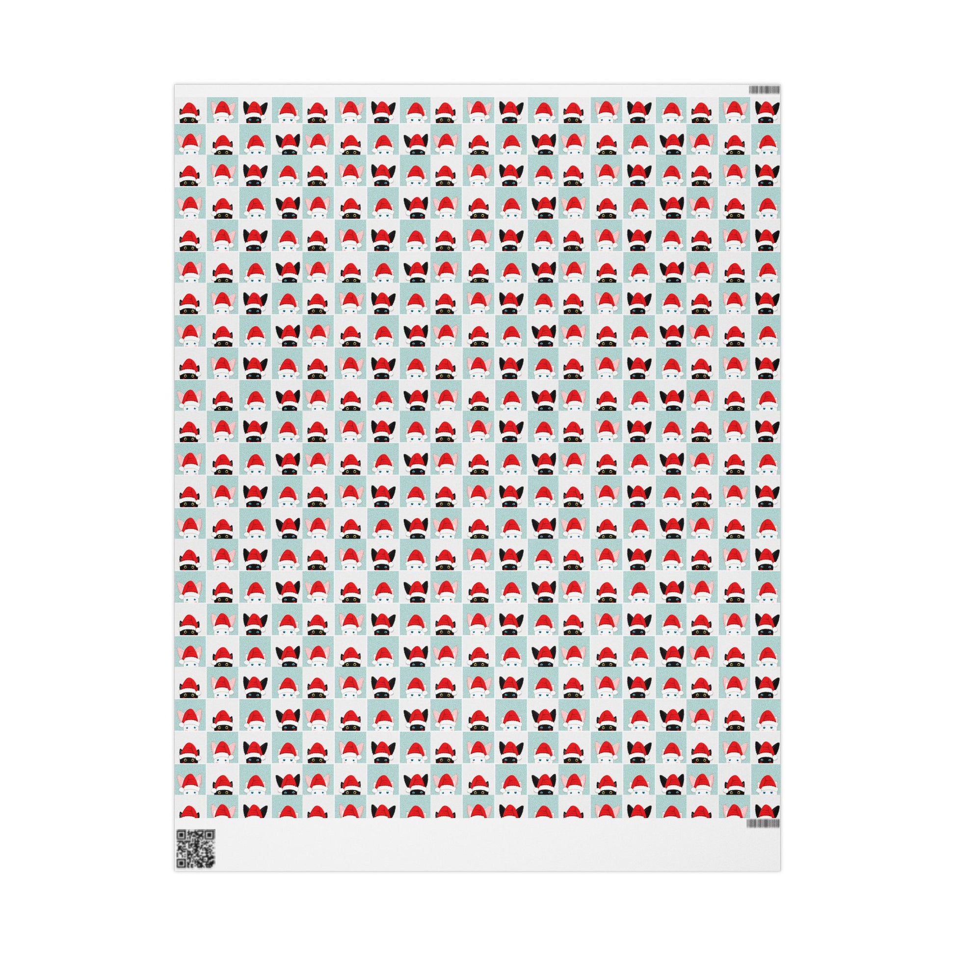 Bright, playful wrapping paper printed on sturdy 90 gsm fine art stock. Rows of small, square illustrations—festive characters wearing red hats—repeat across a soft aqua background, creating a cheerful, handcrafted look. Choose glossy or matte finish to suit your styling: glossy for a vibrant, reflective pop; matte for a soft, elegant feel. Available in three lengths so you can wrap small keepsakes or long, awkward boxes. Each sheet is one-sided and includes a narrow white trim at the top and bottom with a small bar and QR code, ready to pair with ribbon or kraft tags for a thoughtful presentation.