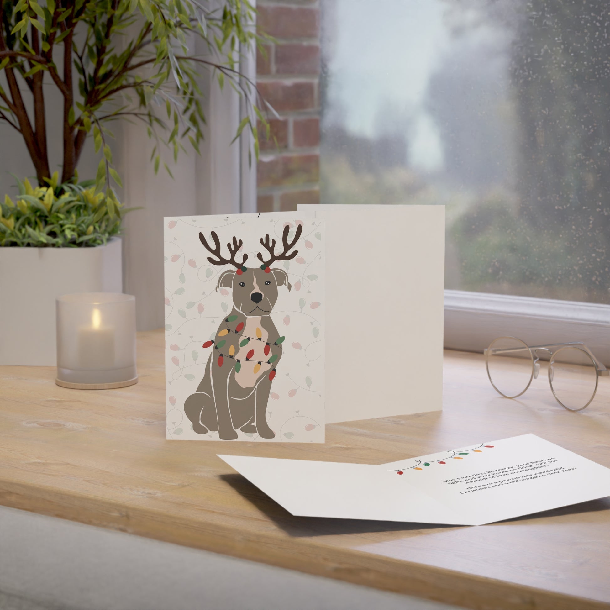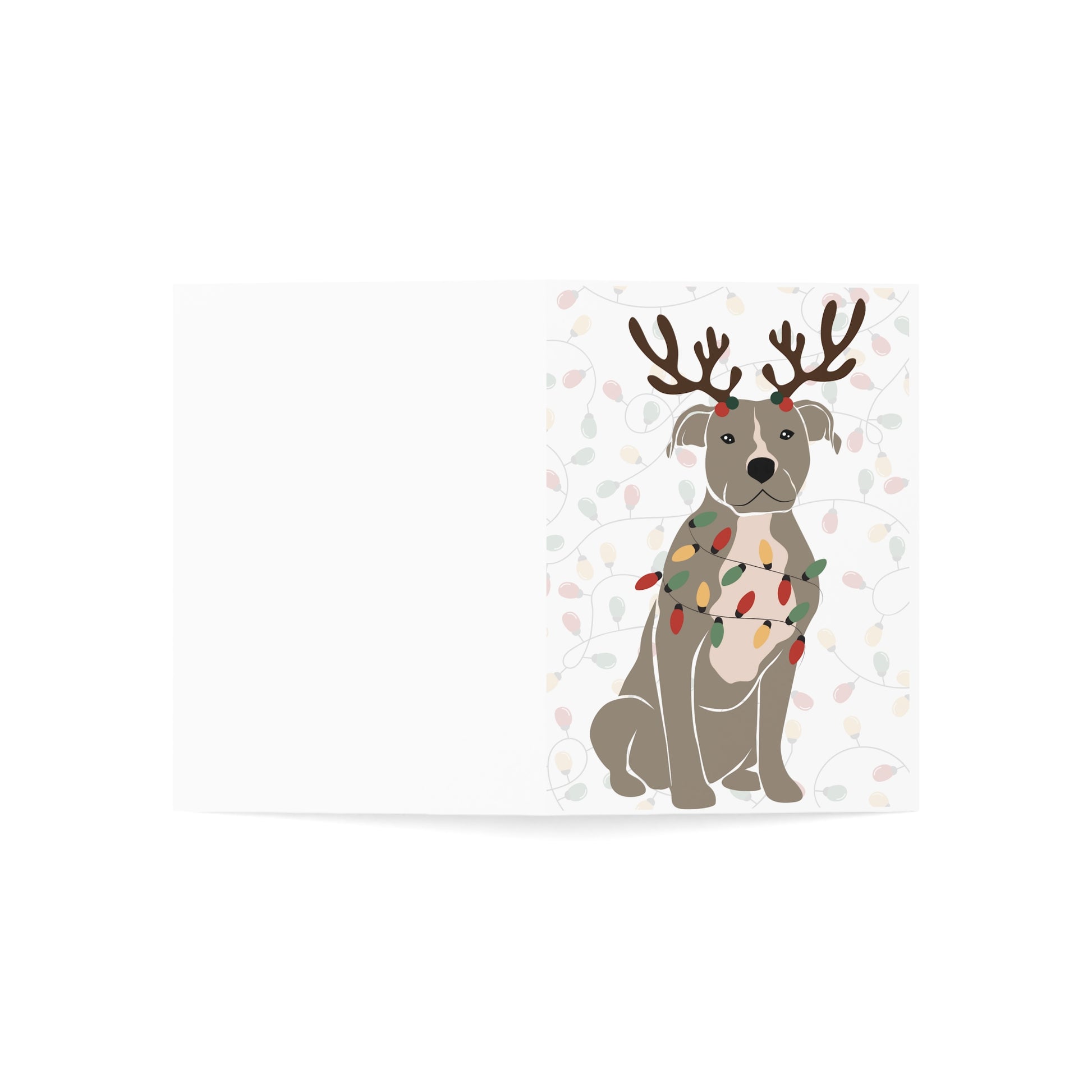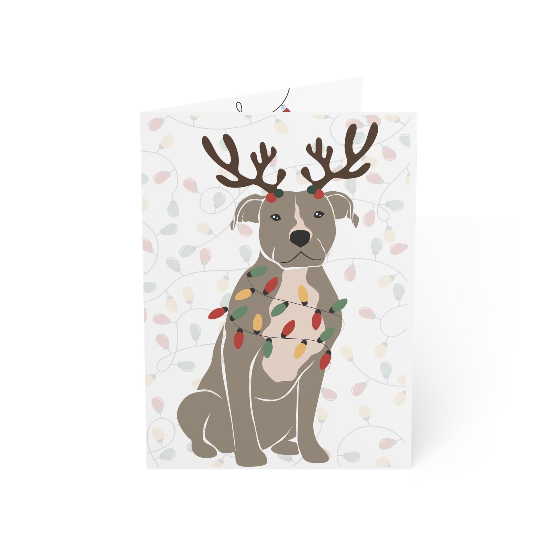 Celebrate the holidays with our festive Pitbull Pawsitivity Greeting Card! Adorned with a heartwarming image of a pitbull sporting antlers and twinkling in Christmas lights, this card spreads joy with a positive holiday message inside, making it the perfect way to share warm wishes for the season and the upcoming New Year.
