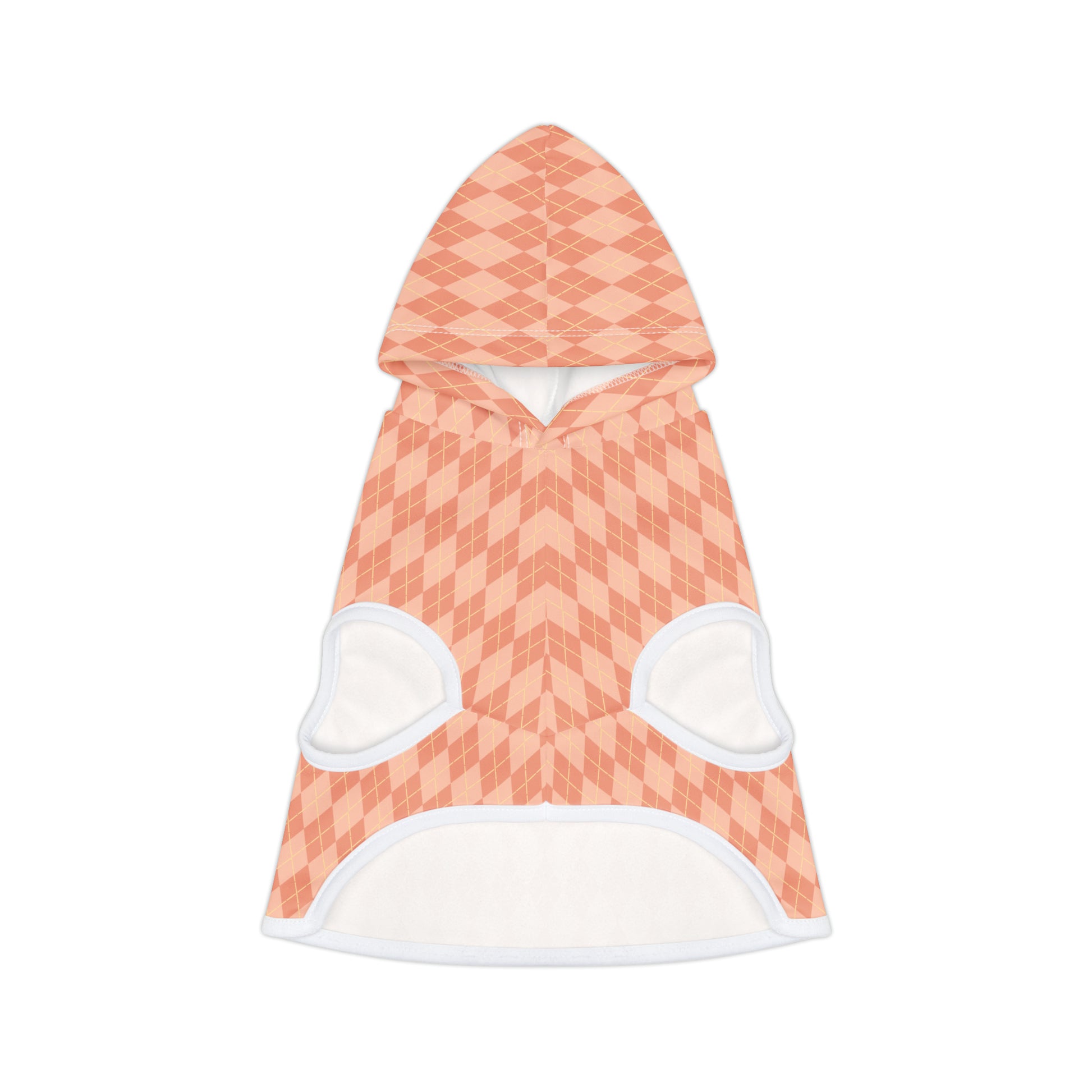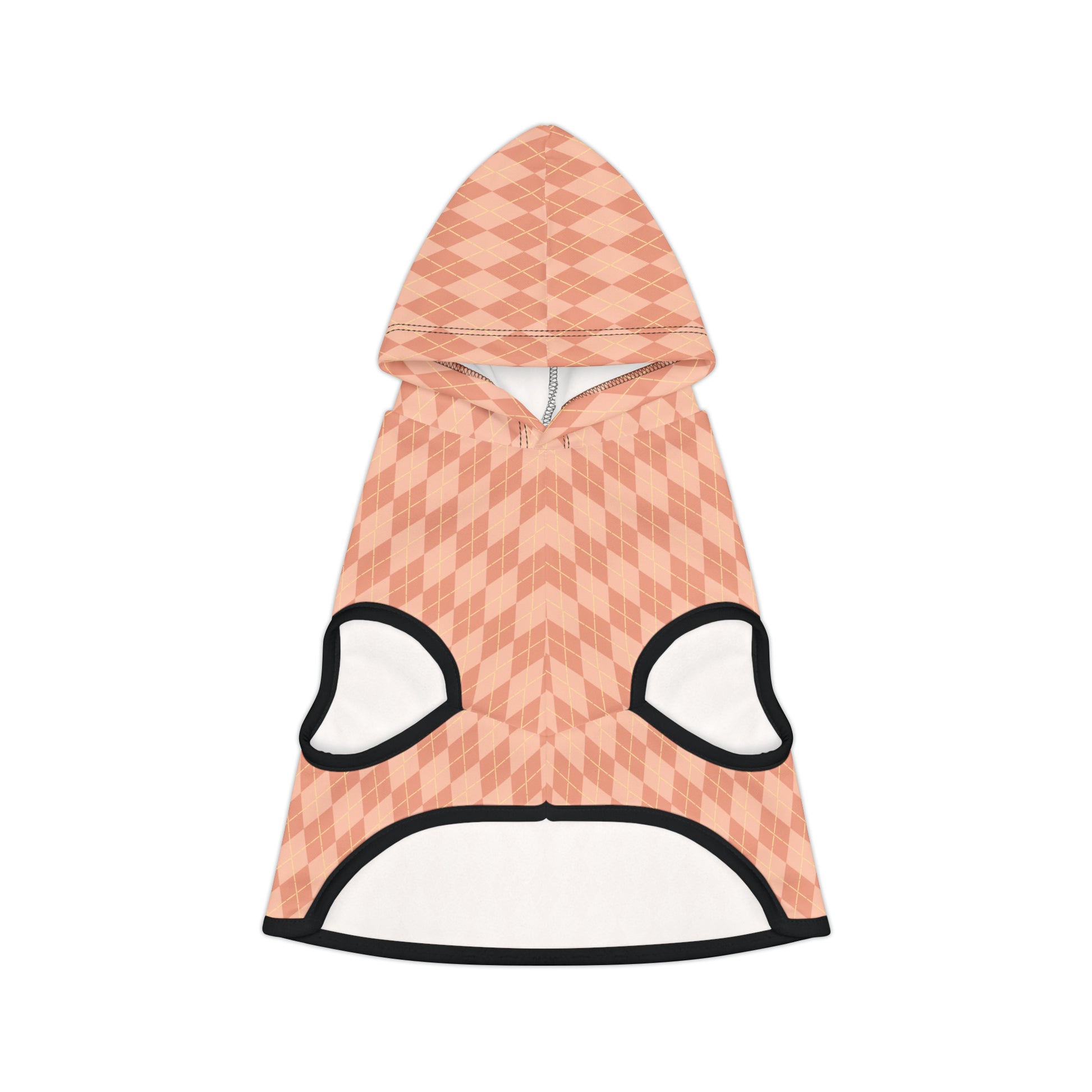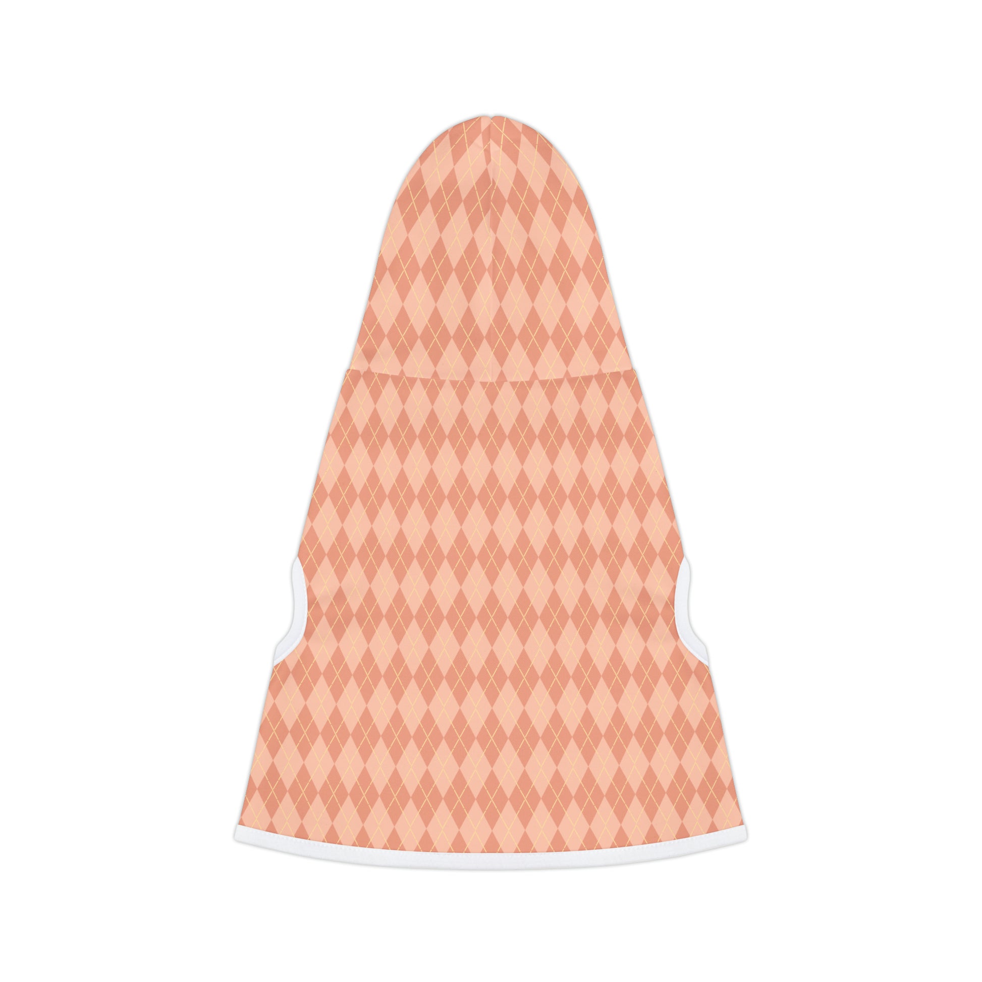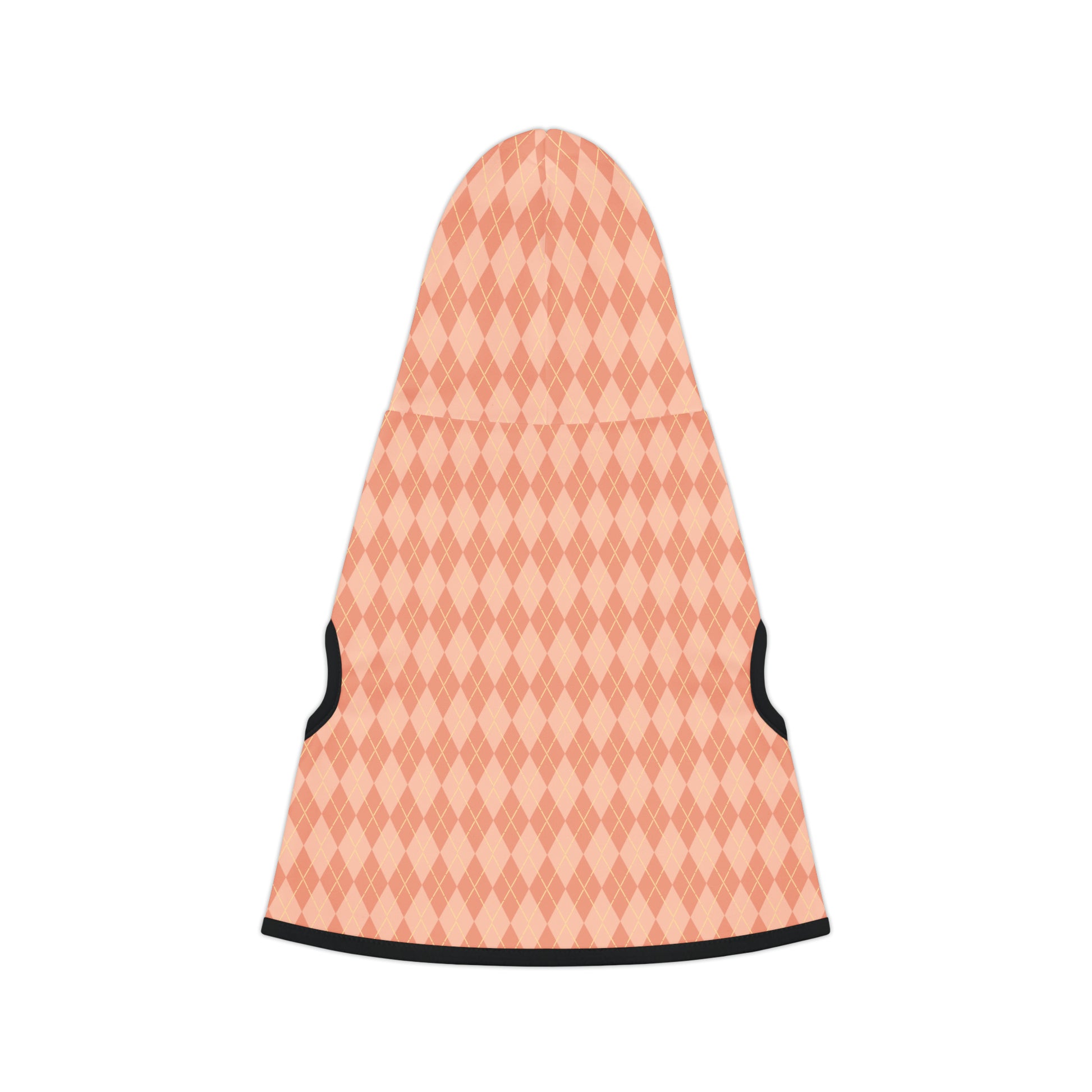 Introducing the Coral Cascade Pet Hoodie—comfort and style in one with an intricate argyle design. Choose black or white rib detailing for a personalized touch. Proudly assembled in the USA, this hoodie lets your pet showcase global glam with distinctive argyle flair. Explore our Coral Cascade human clothing collection for a perfectly coordinated look. Elevate your pet's style and yours too!