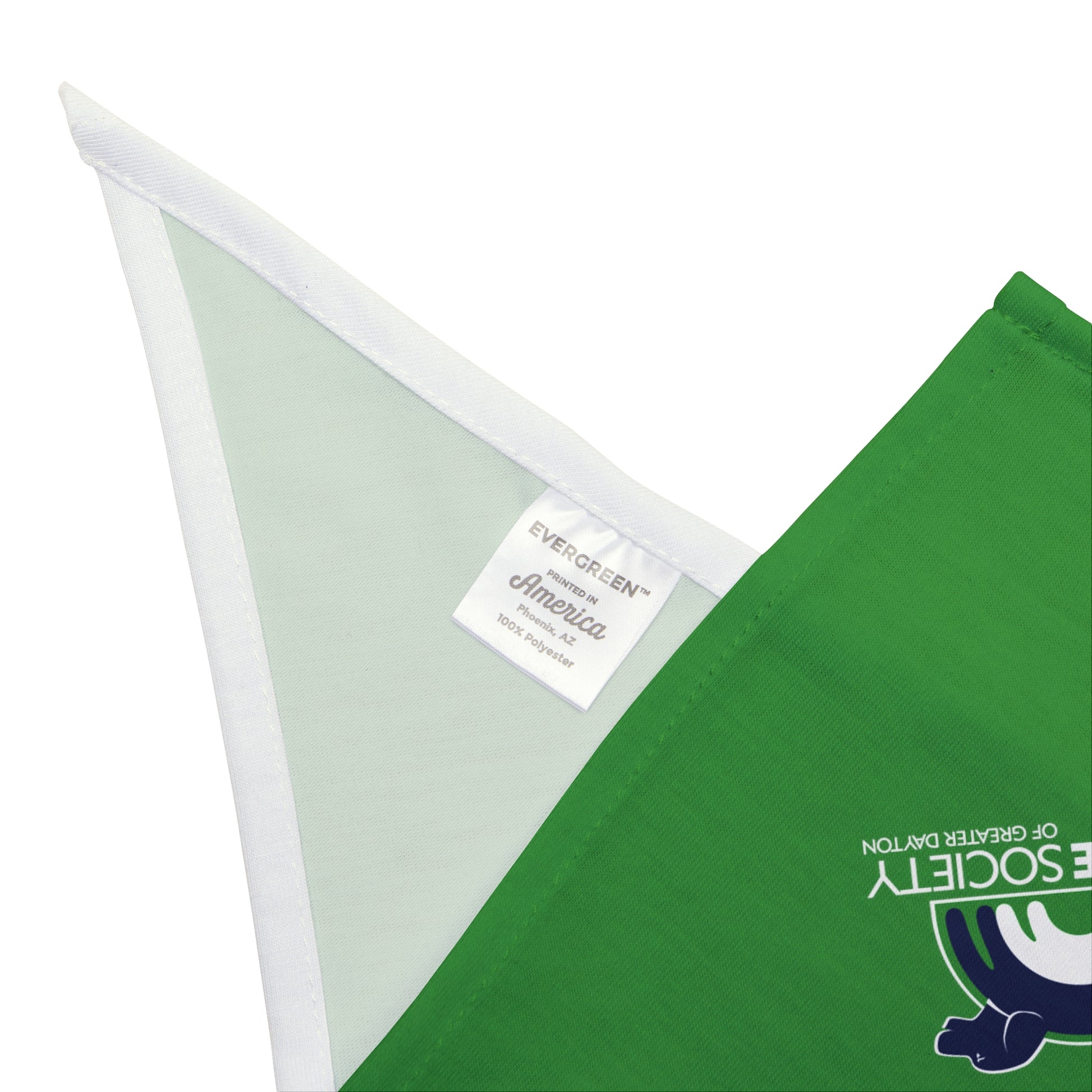 Dress your furry friend in style with our Green Pet Bandana featuring the Humane Society of Greater Dayton (HSGD) logo! Crafted from soft-spun polyester, this bandana ensures comfort and style for your pet, without any irritation. With its sleek navy hue and the iconic HSGD emblem, your pet will stand out from the pack while supporting a great cause. Available in two sizes to fit all breeds, this one-sided print bandana is the paw-fect accessory to showcase your pet's unique personality and your commitment to animal welfare.