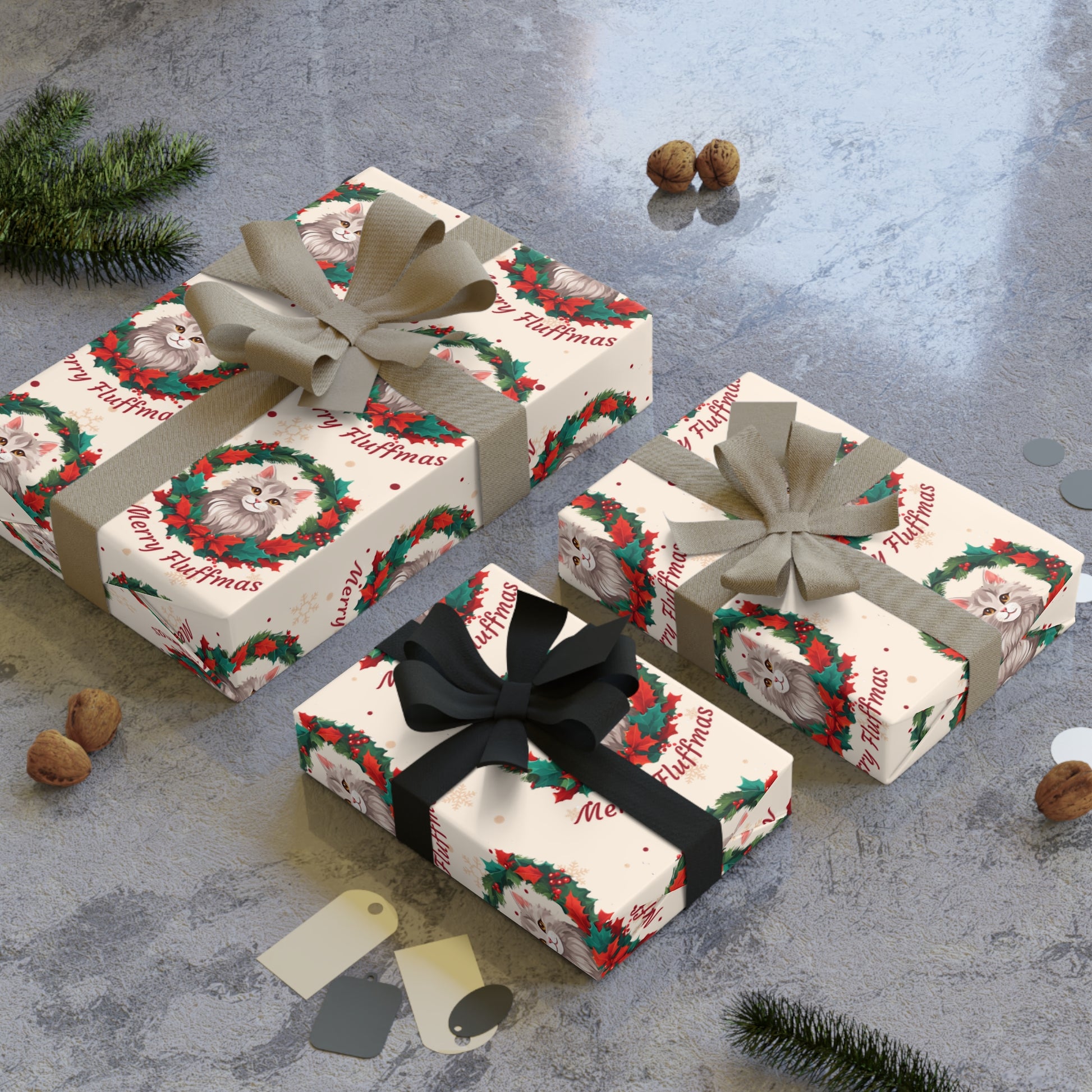 Merry Fluffmas Cat Gift Wrap Paper
