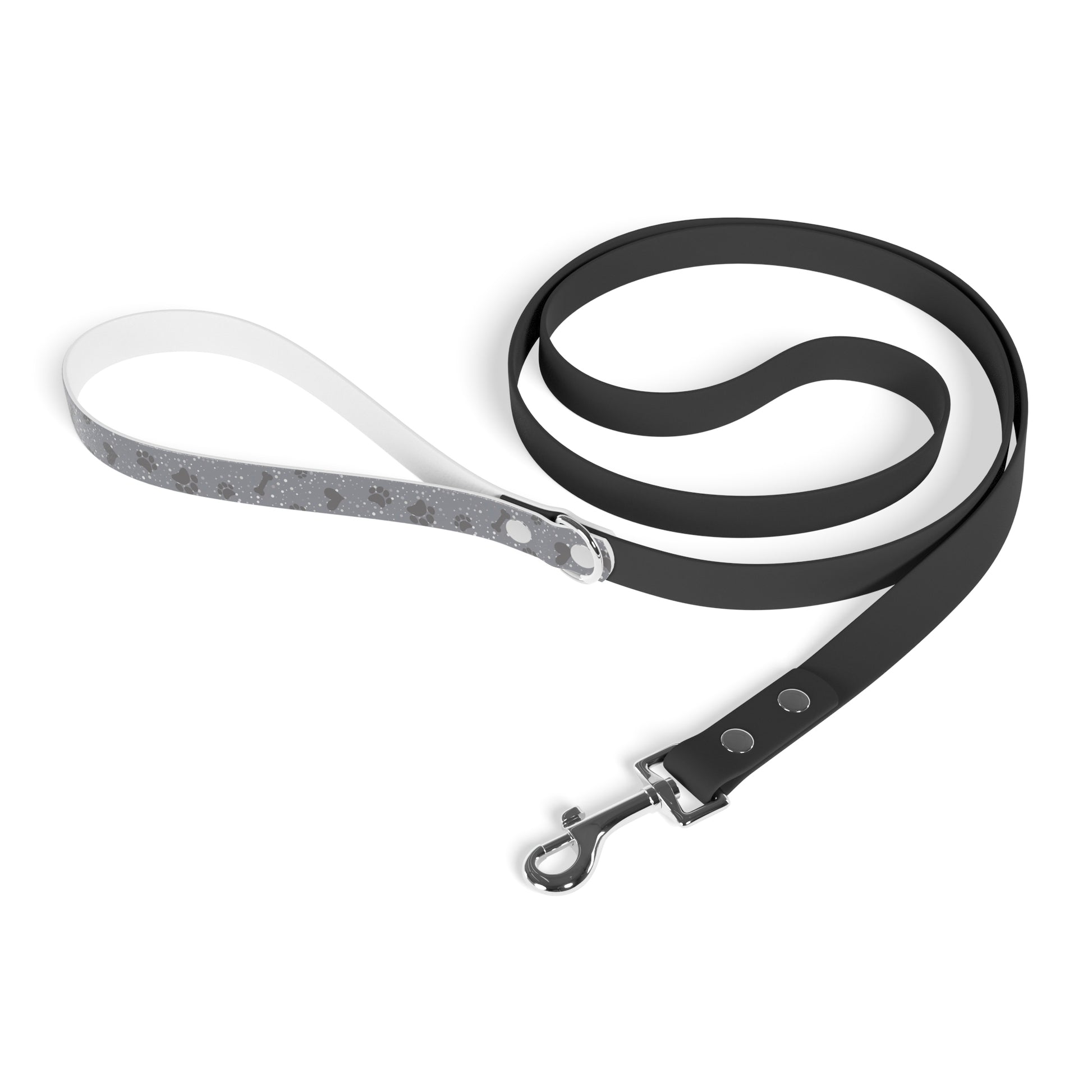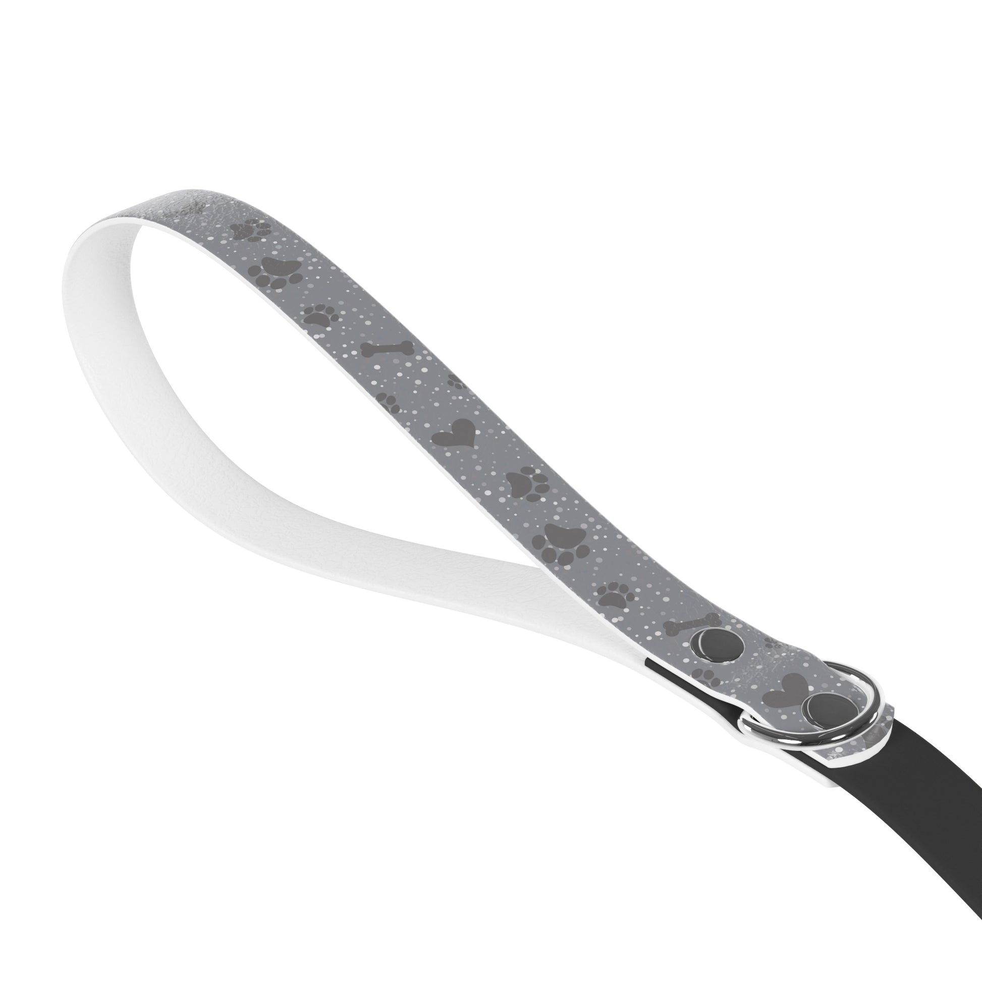 Turn every stroll into a fashion statement with our Paws and Hearts Dog Leash! This 69.3-inch leash features a playful pattern of paw prints, hearts, and bones on the comfortable TPU handle. Crafted for durability and style, the black PVC strap ensures a secure grip, and the zinc alloy snap hook keeps your pup safe. Waterproof and perfect for any adventure, this leash is a blend of fashion and function, adding a touch of personality to your walks with your furry friend.