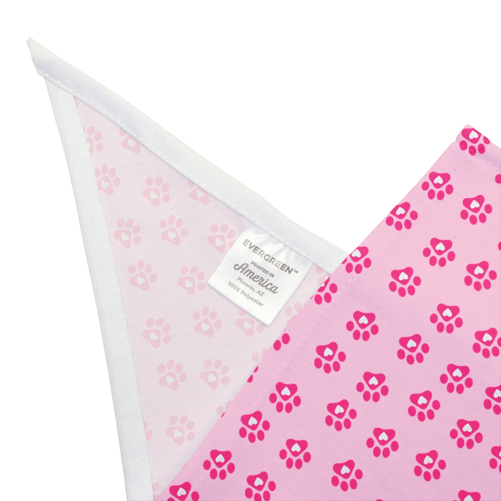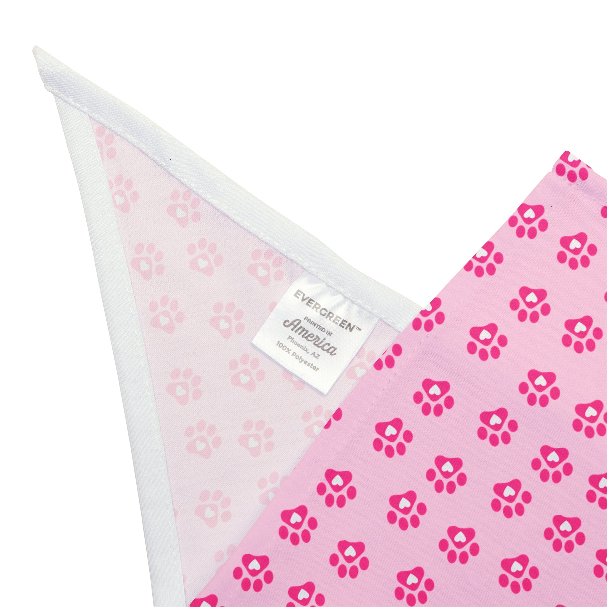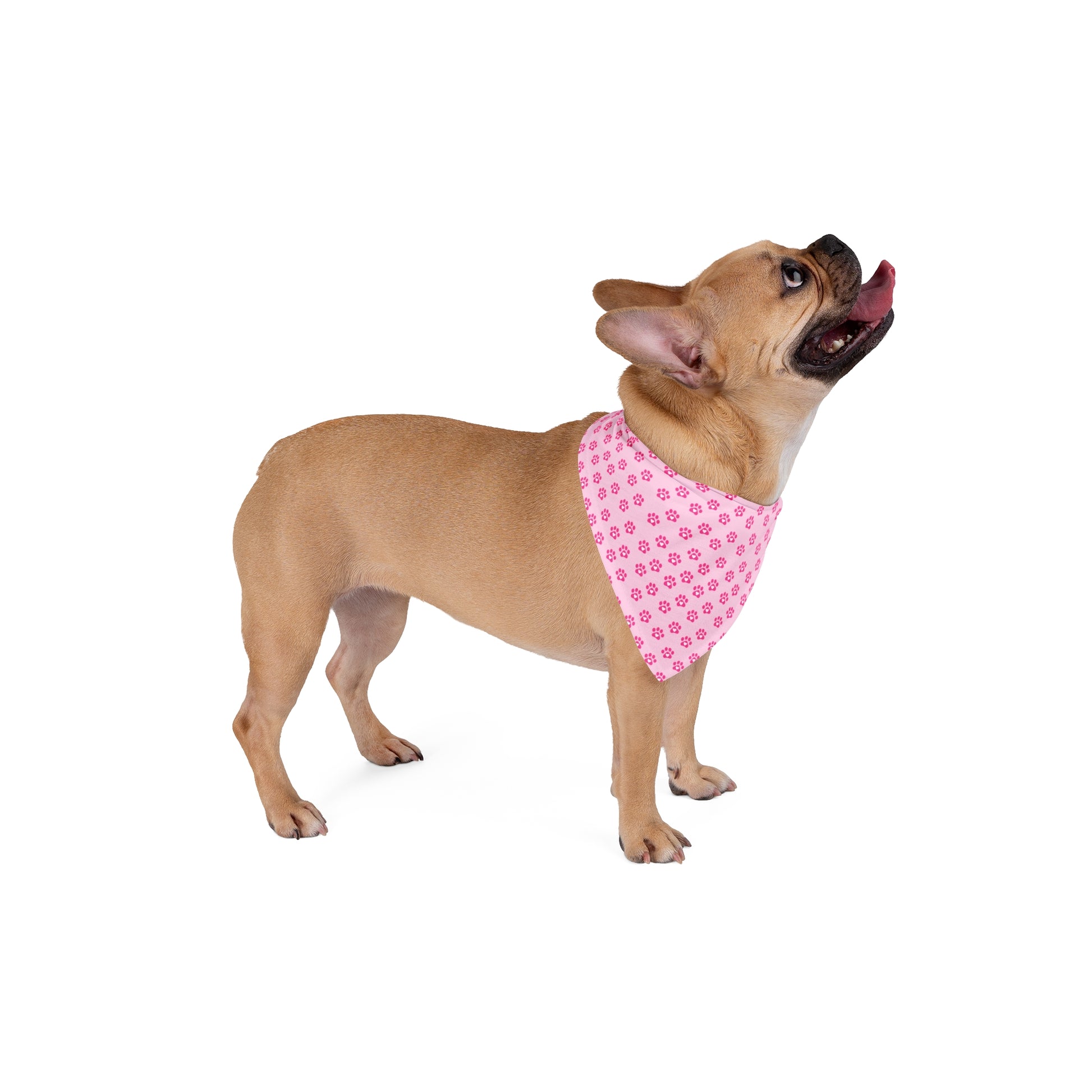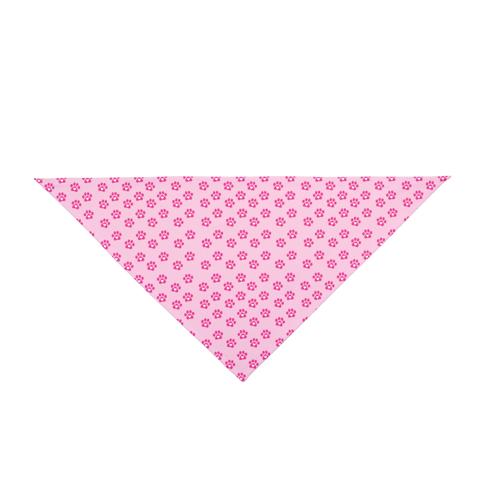Unleash the paw-some style with our Pink Paws Pet Bandana! Let your furry friend strut their stuff in this adorable accessory featuring dark pink paws adorned with charming hearts. Crafted from soft-spun polyester, it's not just a fashion statement but also a comfy addition to your pet's wardrobe. With two sizes available, it's perfect for pups of all shapes and sizes. Get ready for tail-wagging cuteness overload!