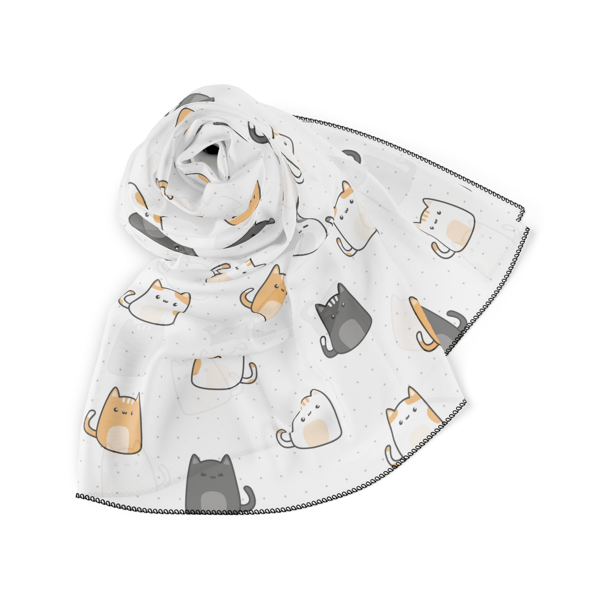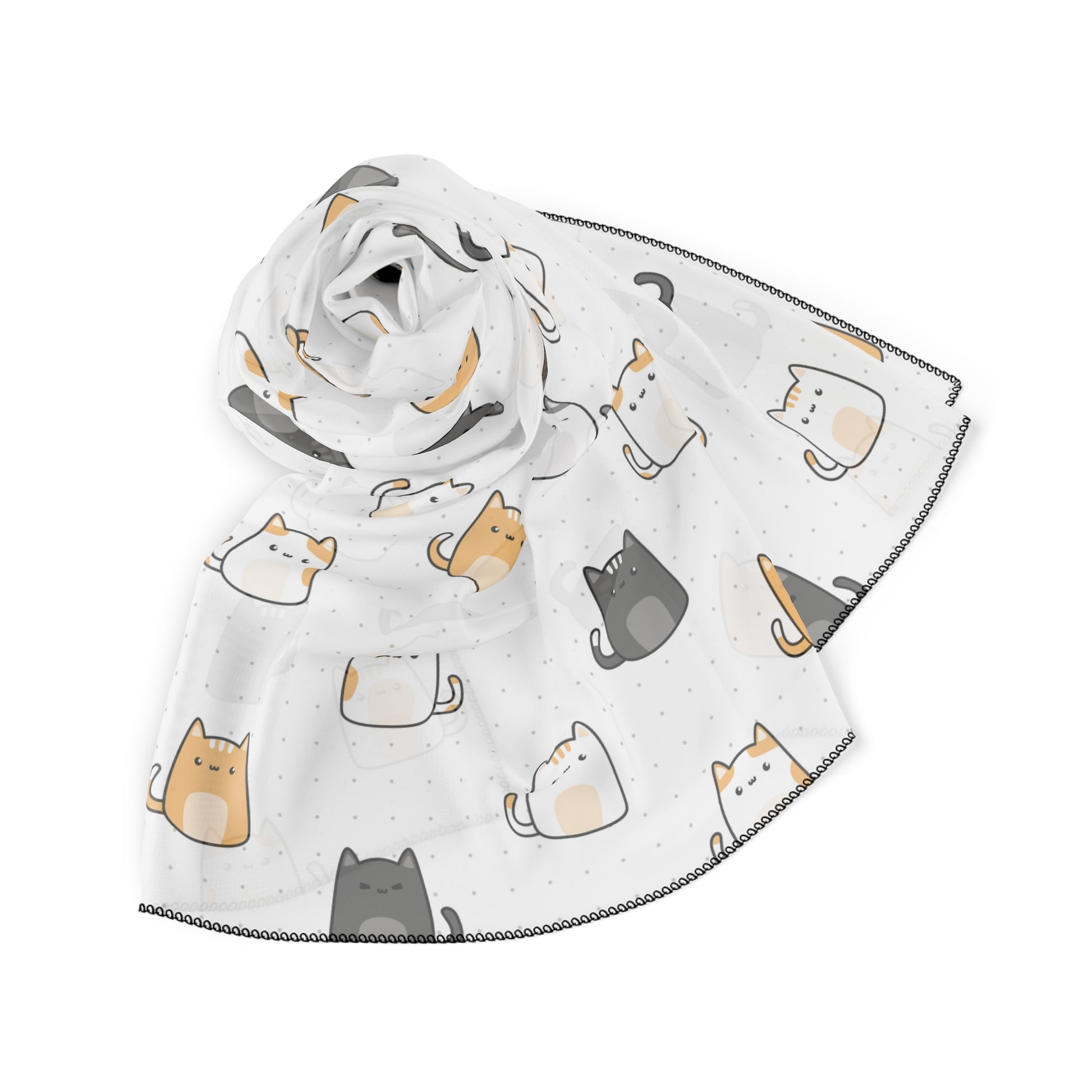 This Purr-fectly Chic Kitty Scarf is crafted from high-quality poly voile and poly chiffon. Light as a cat's playful pounce, this sheer scarf features an adorable cat pattern that guarantees smiles wherever you go. Choose from two sizes (25" × 25" or 50" × 50") to add a meow-gical touch to any outfit. Embrace the feline fun and wrap yourself in style! Made from high quality poly voile and poly chiffon, this sheer scarf is extremely light and airy. Outstanding quality print turns it into a head turning style accessory.