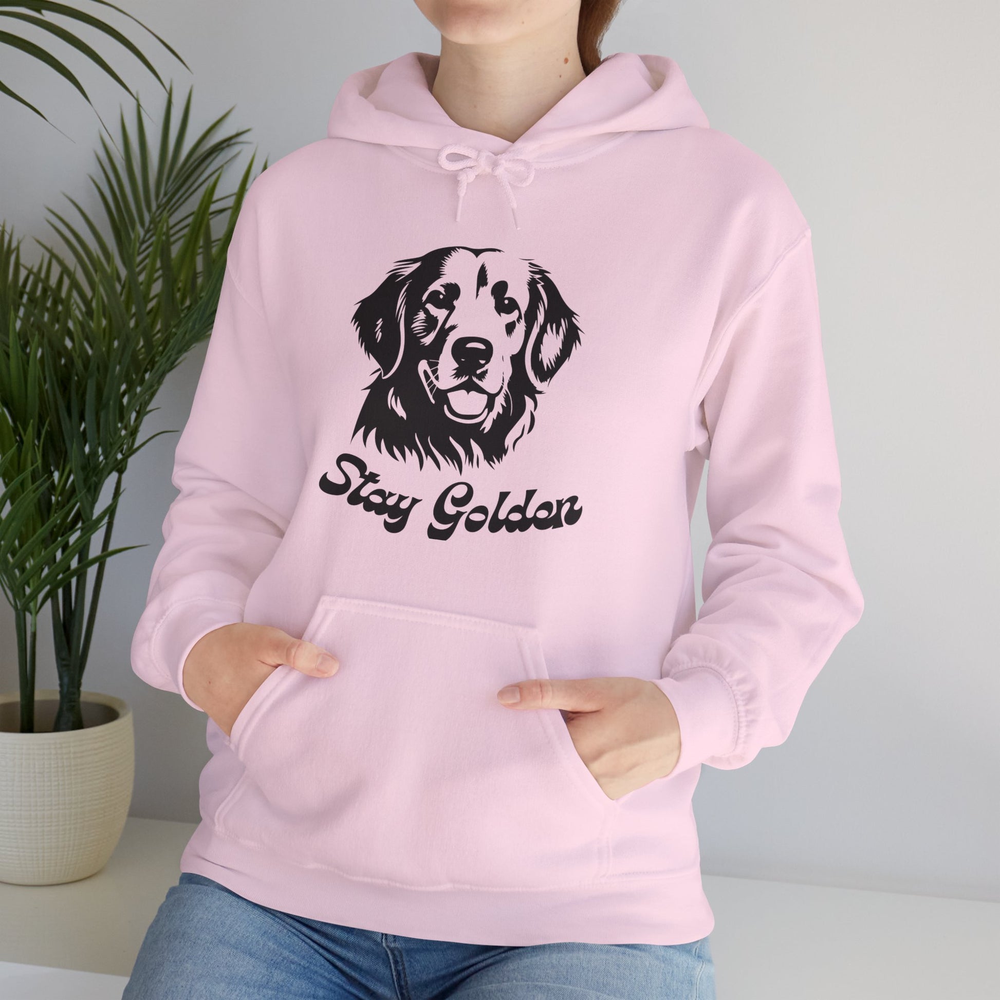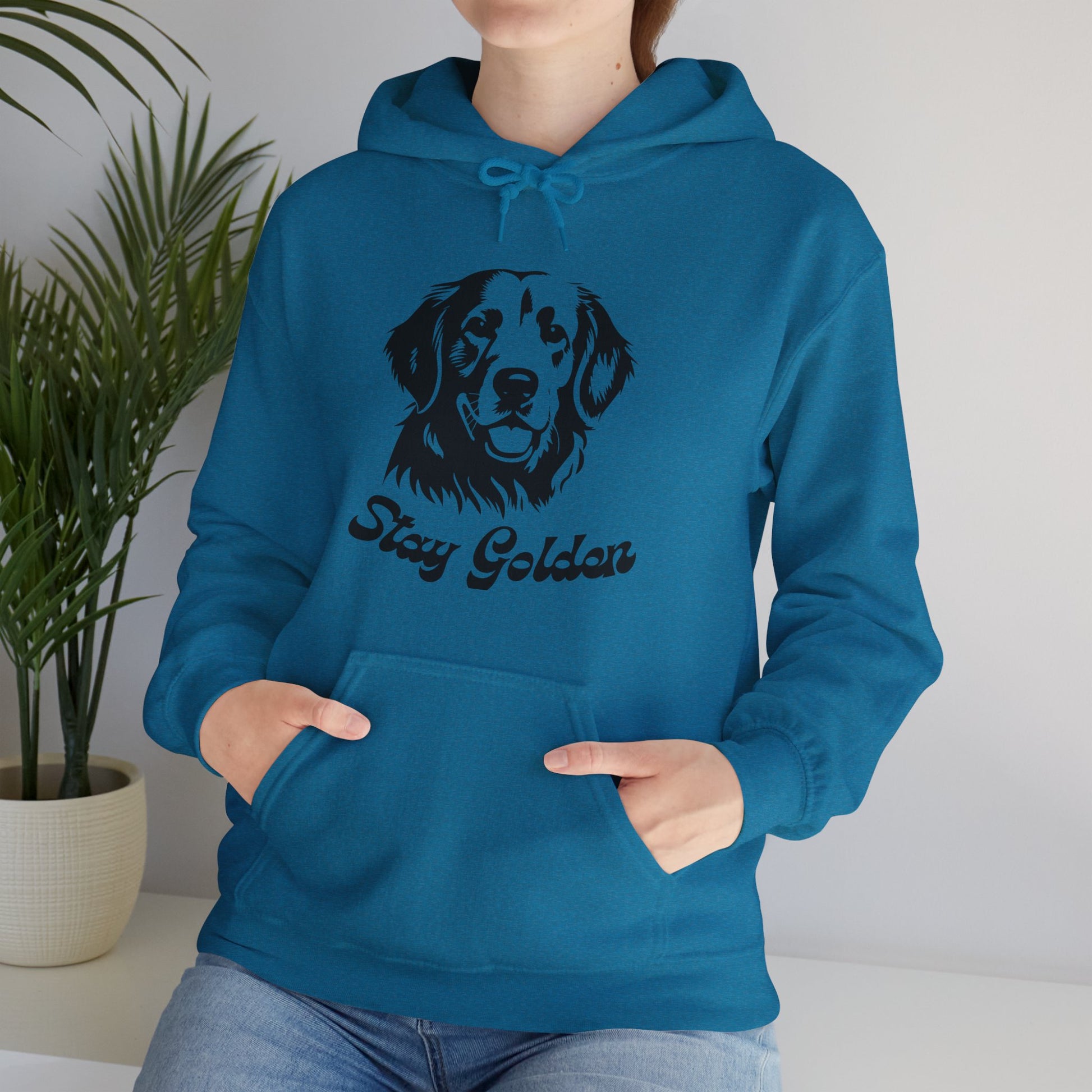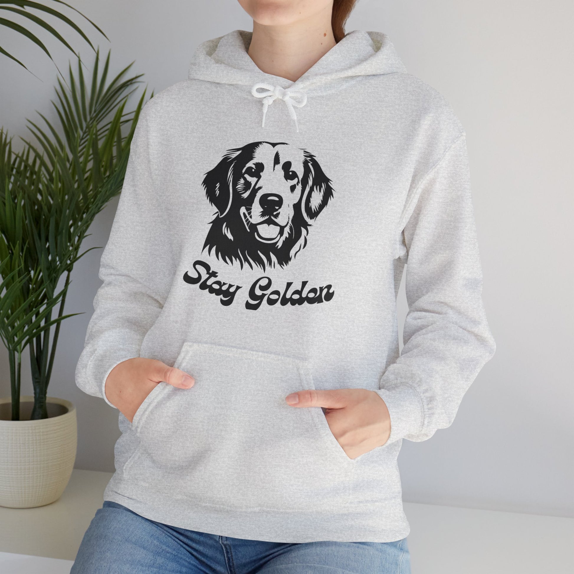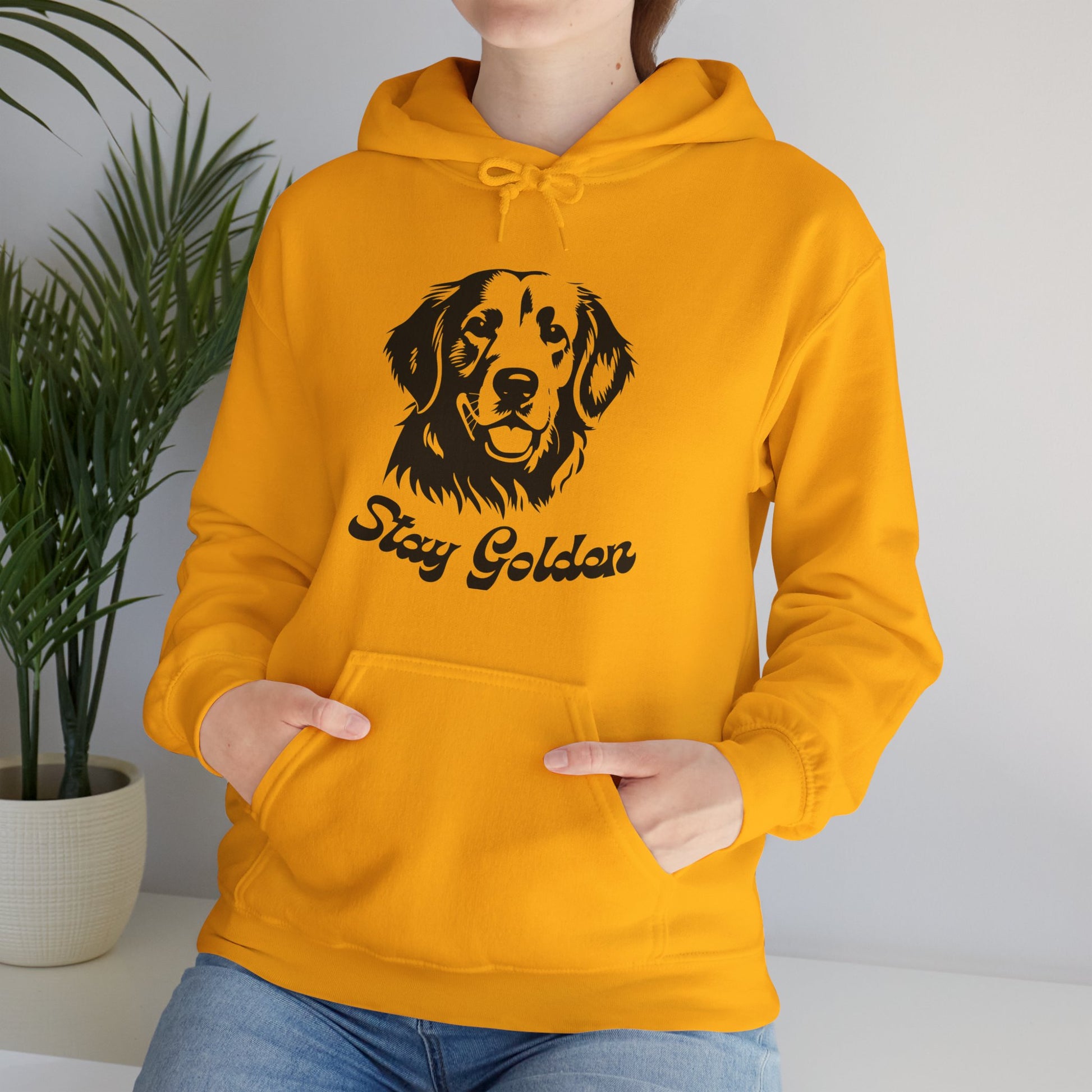 - Stay Golden Design: Express your love for warmth and golden retrievers with our delightful "Stay Golden" print. This unisex hoodie seamlessly combines style and sentiment for a cozy and heartwarming look.