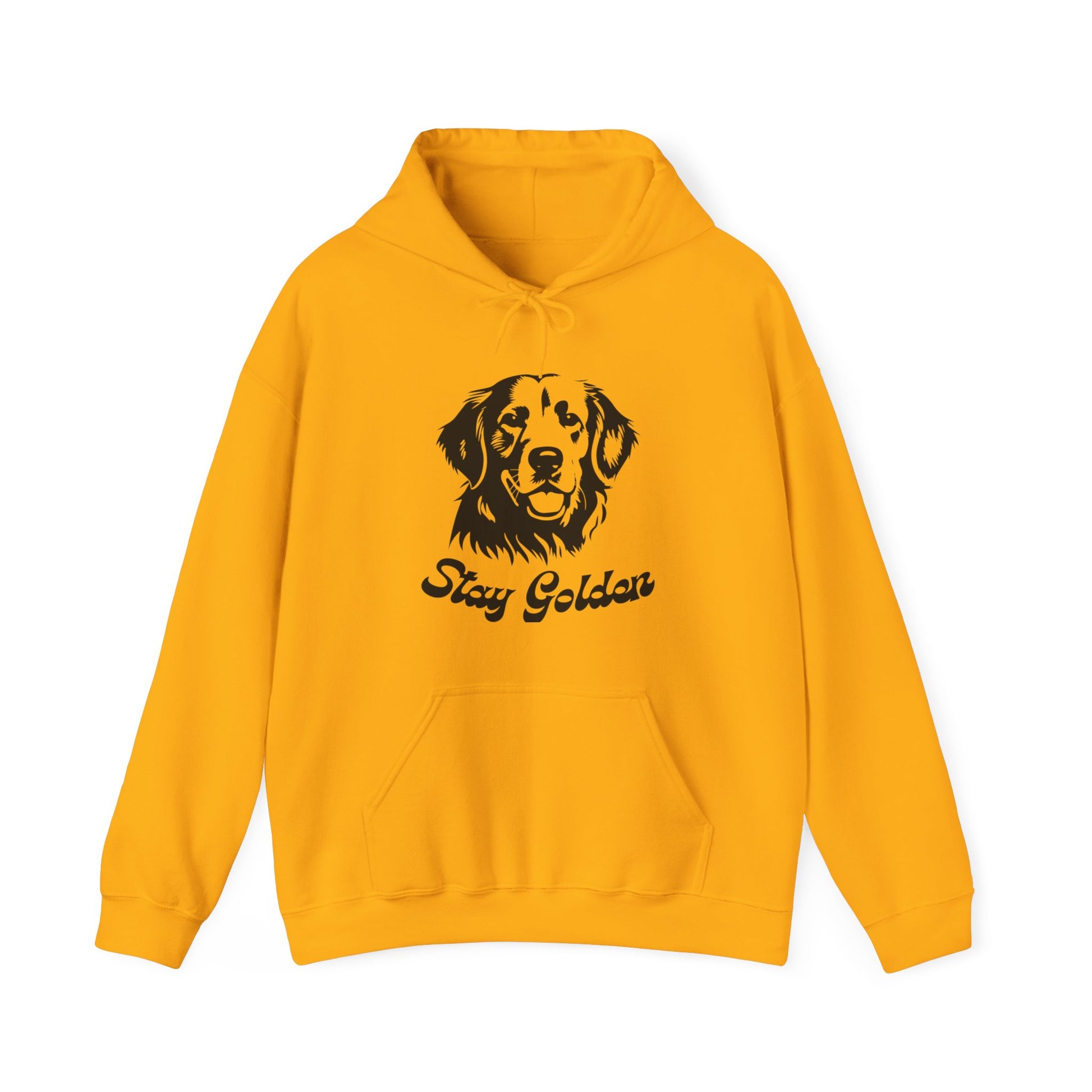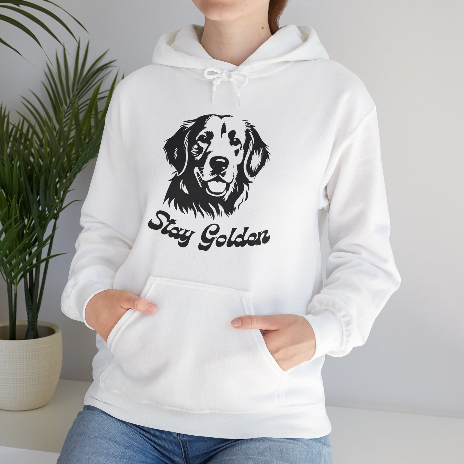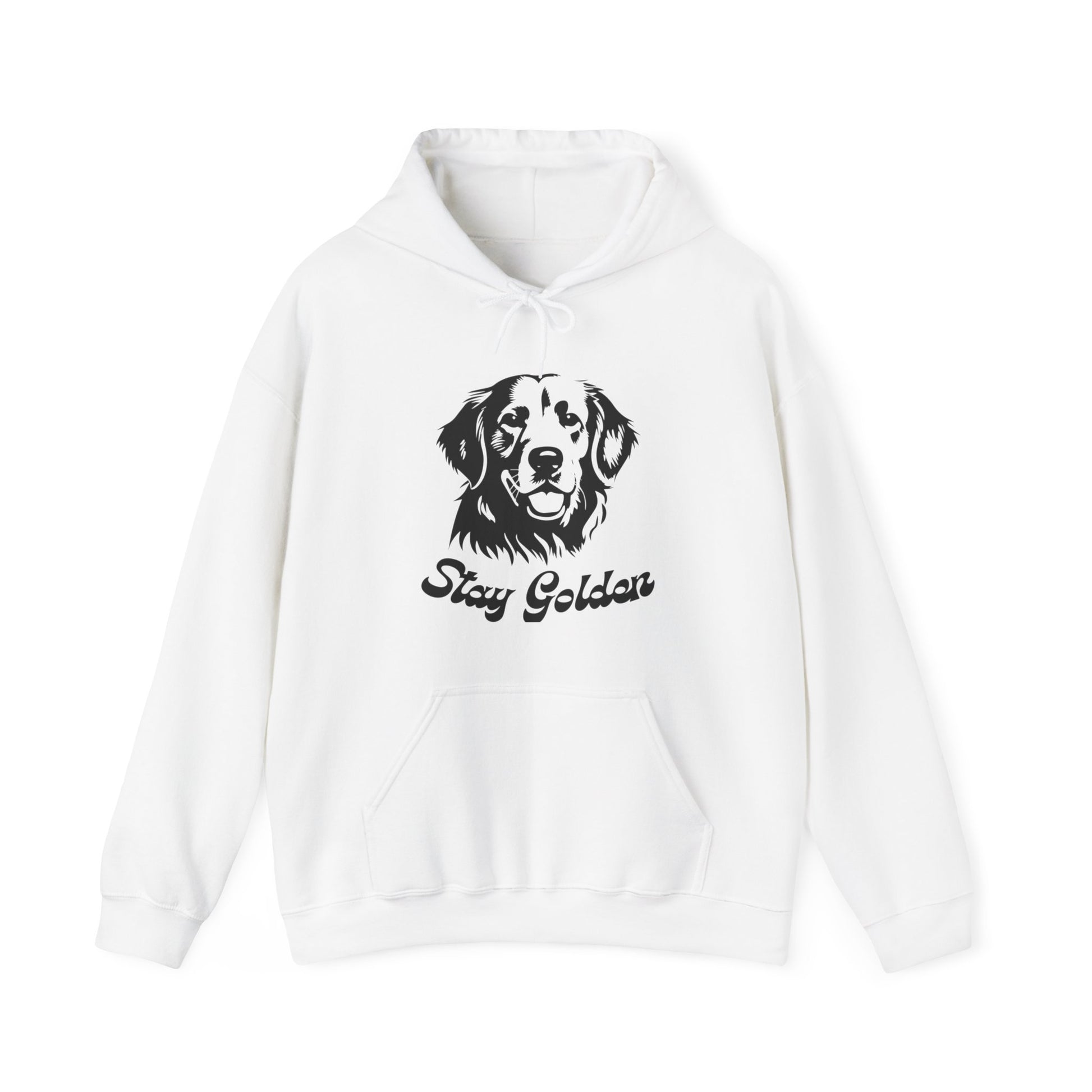 Introducing our "Stay Golden" Unisex Hooded Sweatshirt – where comfort meets canine charm! Embrace warmth and relaxation in this plush and stylish hoodie featuring a lovable golden retriever design.