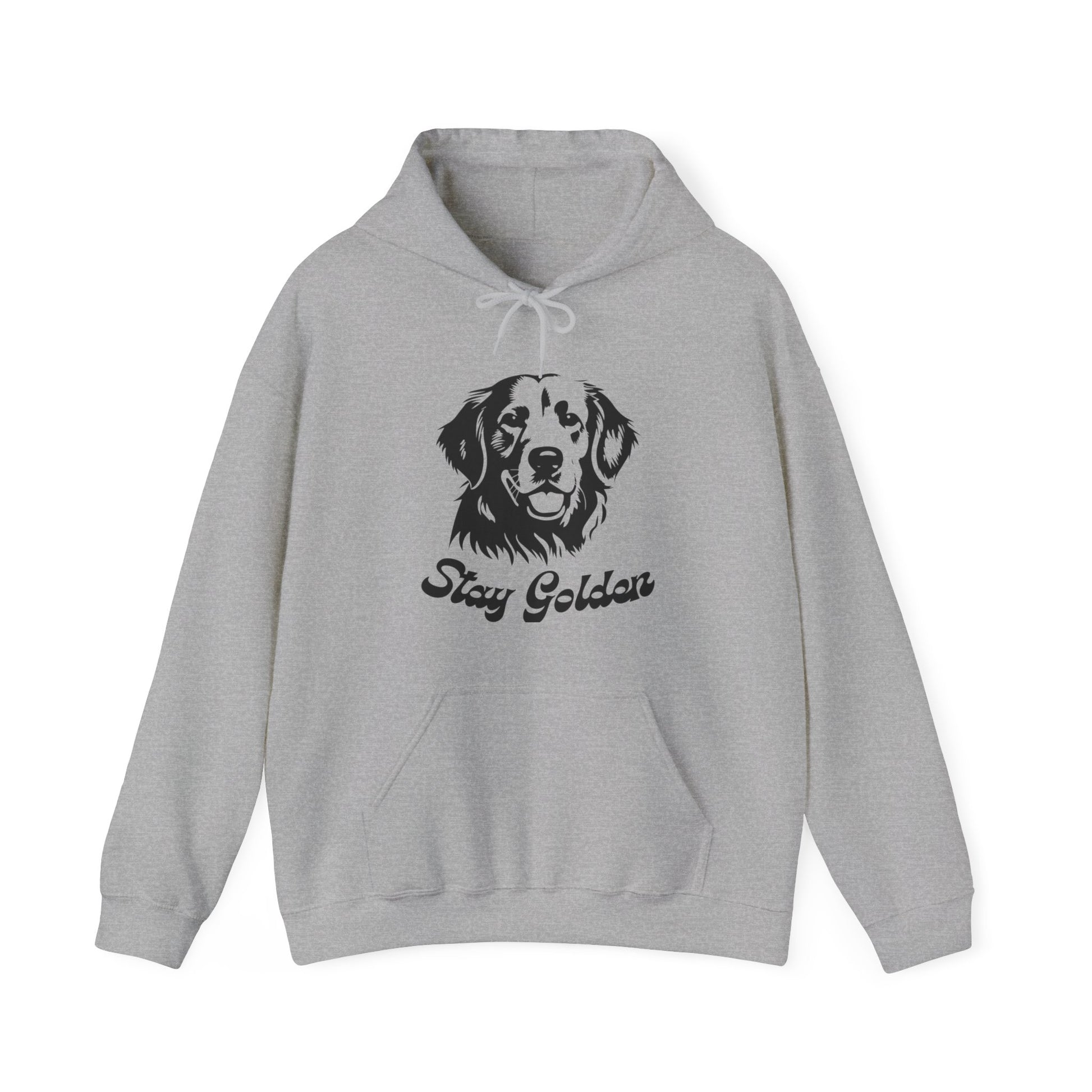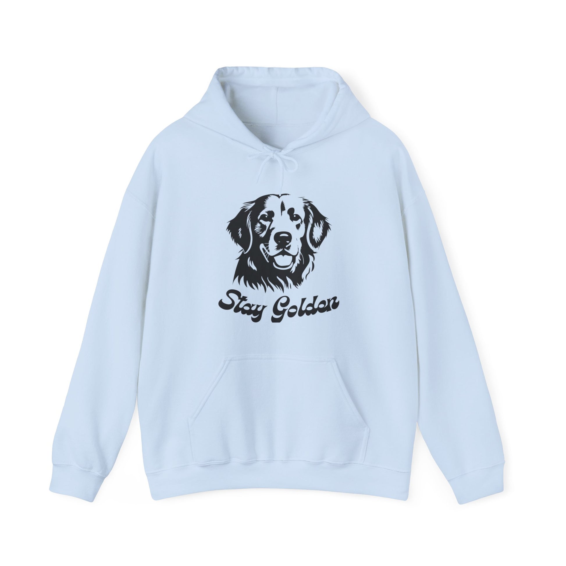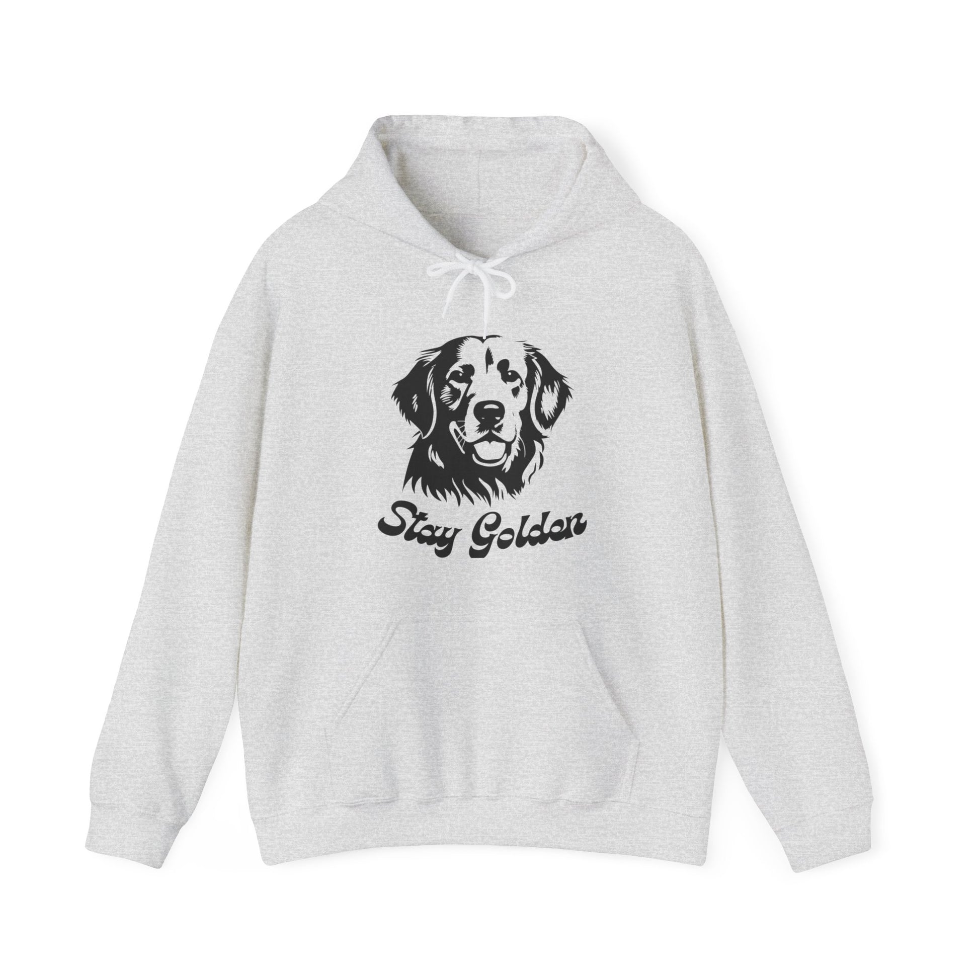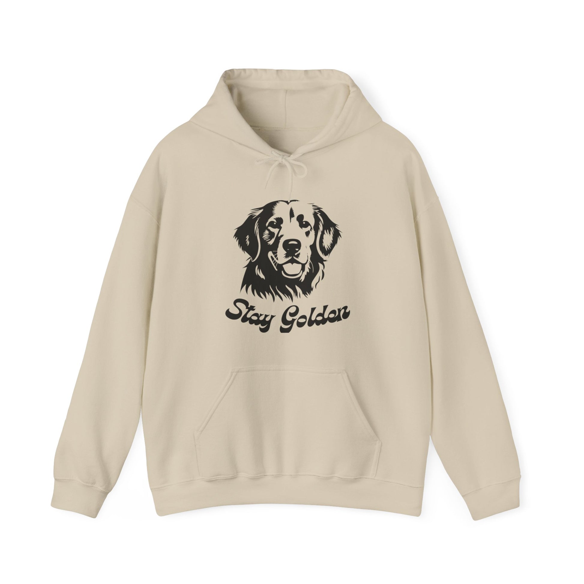 Introducing our "Stay Golden" Unisex Hooded Sweatshirt – where comfort meets canine charm! Embrace warmth and relaxation in this plush and stylish hoodie featuring a lovable golden retriever design.